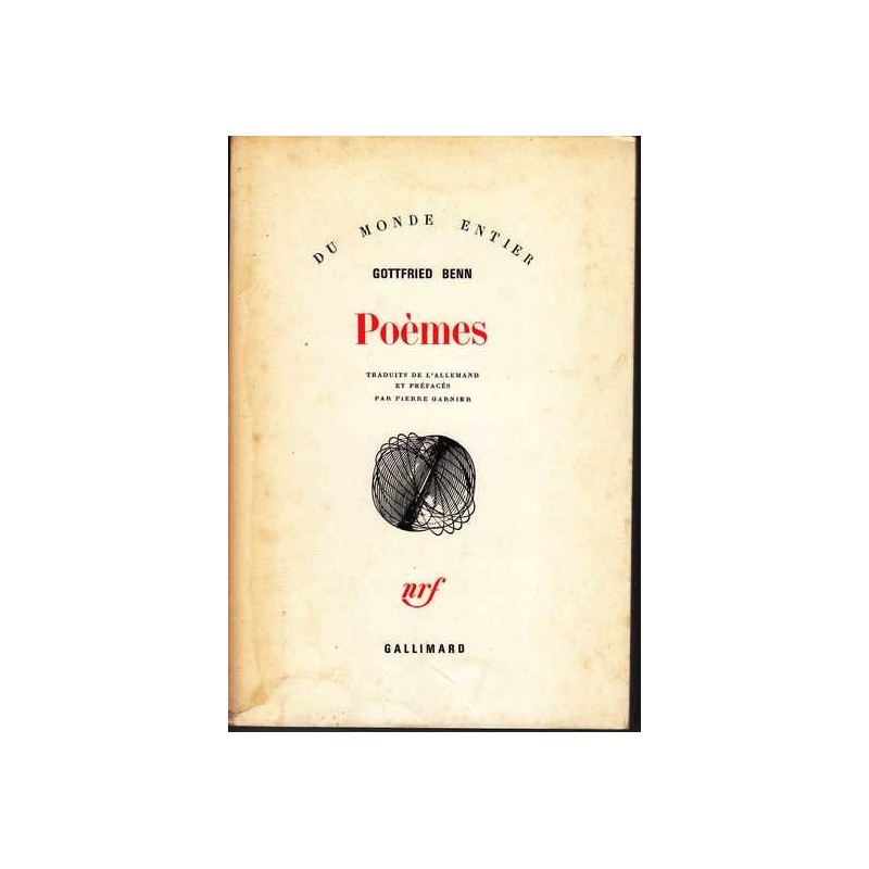 Broché. 395 pages. 1972. Collection "Du monde entier". Gottfried Benn (1886-1956) est considéré comme l'un des plus grands poètes du XX° siècle. Traduction de l'allemand et préface de Pierre Garnier qui fut l'un des premiers traducteurs de Gottfried Benn en France.